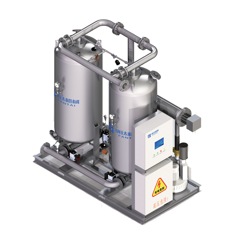 - 壓縮空氣由設備入口經閥門控制進入A塔吸附,得到凈化的壓縮空氣,由排氣截止閥輸出到下游用氣點。由鼓風機吸入大氣中的空氣,加熱至合適的溫度,進入B塔,對B塔進行再生,解析出B塔吸附劑已吸附的水分。加熱完成后,從設備出口引少量成品氣對床層進行冷卻。FBP型微氣耗鼓風熱吸附式干燥機結構相對簡單、露點溫度、氣耗低,適用氣量范圍大,可廣泛應用于半導體,化工,鋰電,鋼鐵等露點需求高的行業(yè)。