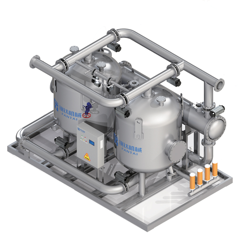 - FYP型壓縮熱再生吸附式壓縮空氣干燥機是利用空氣壓縮過程產(chǎn)主的熱量對吸附劑進(jìn)行再生 ,然后需要~1-3%的凈化壓縮空氣減壓進(jìn)行冷卻,這樣設(shè)計的目的是利用壓縮空氣系統(tǒng)自身的熱源使吸附劑得到充分脫附,確保露點溫度在滿足用戶要求的基礎(chǔ)上
